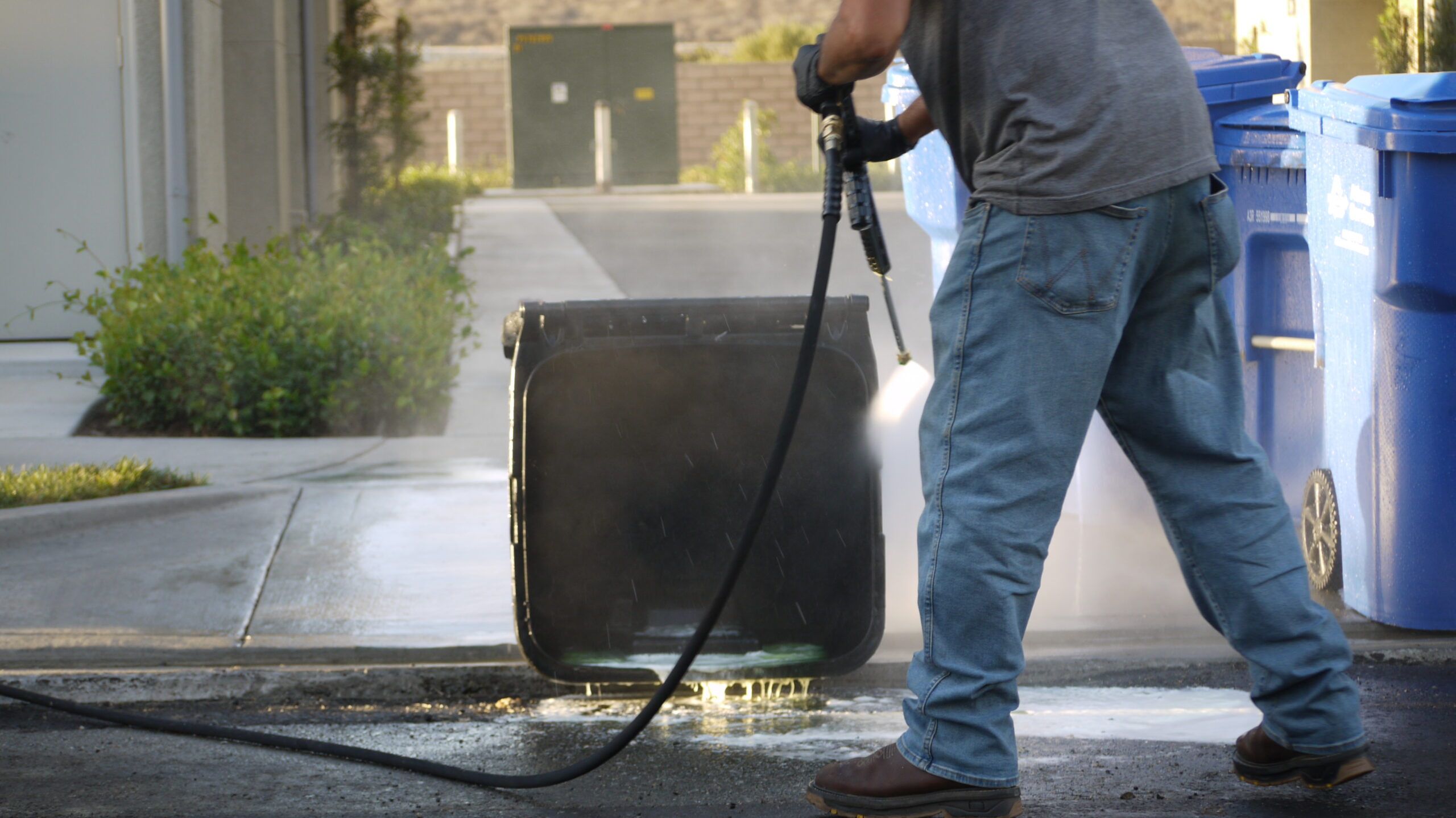 We clean, sanitize, and deodorize your bins curbside—right after pickup.